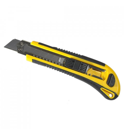 CÚTER BIMATERIA AUTOCARGABLECúter bimateria con guía metálica. Con 3 hojas de 18 mm de acero alto en carbono.