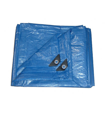 Toldo impermeable azul. Con tratamiento protector de UV (rayos ultravioleta). Con bordes de doble lona, cantoneras reforzadas con pieza de plástico y ojales metálicos. De 100 gr/m² de grosor. Disponible en distintas medidas: 2x3m, 3x4m, 3x5m, 4x6m, 5x8m, 6x10m y 8x12m.