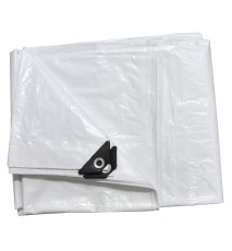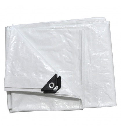 Toldo impermeable blanco (deja pasar la luz). Con tratamiento protector de UV (rayos ultravioleta). Con bordes de doble lona, cantoneras reforzadas con pieza de plástico y ojales metálicos. De 115 gr/m² de grosor. Disponible en distintas medidas: 2x3m, 3x4m, 3x5m, 4x6m, 5x8m, 6x10m y 8x12m.