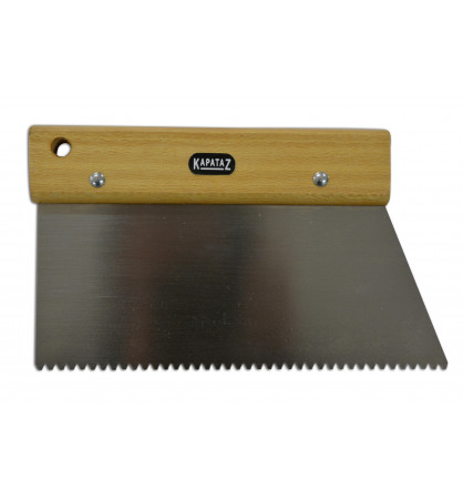 ESPÁTULA-PEINE PARA ENCOLAR Con mango de madera. Con dientes en pico de 2 mm x 3 mm.