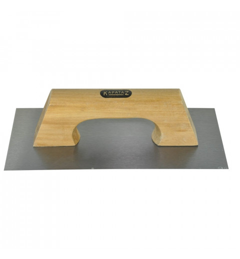 Llana yesero de acero con mango de madera cerrado. Medidas: 28 x 13 cm