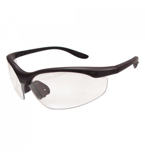 GAFAS AERODINÁMICAS Se ajustan perfectamente y son muy ligeras. Con montura de nylon y lentes de policarbonato incoloro, con gran resistencia a impactos. Con tratamiento antirayaduras y antivaho. Con puente nasal y patillas con goma antideslizante. Cumplen la norma CE EN166:2001, EN167:2001, EN168:2001 y EN170:2002.