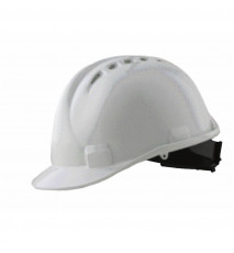 CASCO VENTILADO CON RULETA (color blanco) Casco fabricado en PEHD resistente a los rayos ultravioletas y sustancias químicas. Con arnés téxtil de 6 puntos de anclaje. Regulable en altura y talla gracias a la ruleta de fácil ajuste (con esponja para mayor confort). Conforme a la norma CE EN397:2012 + A1:2012.