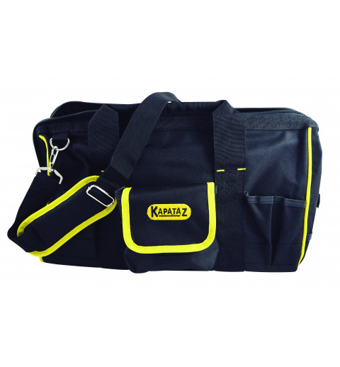 BOLSA DE BOCA ANCHA En tejido resistente y fondo reforzado. Con múltiples bolsillos y asas extra fuertes. Medidas: 46 x 28 x 30 cm