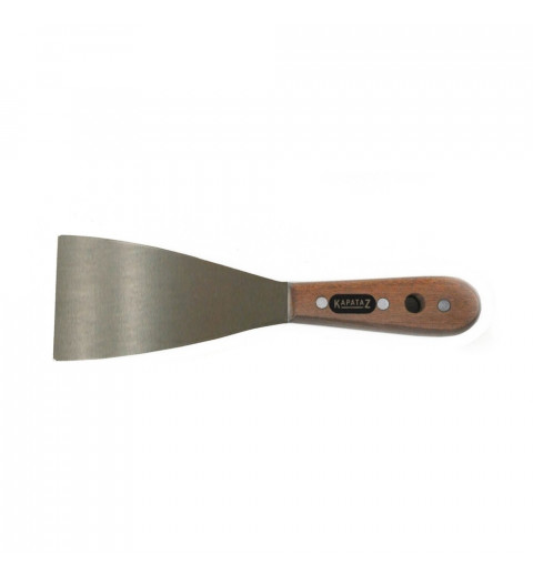 ESPÁTULA RÍGIDA DE ACERO INOXIDABLE PRO Con hoja de acero entera (incluso debajo del mango de madera). Cantos y boca refinados. Espesor hoja: 2 mm. Disponible en distintos anchos de hoja: 7 cm, 8 cm, 9 cm y 10 cm.