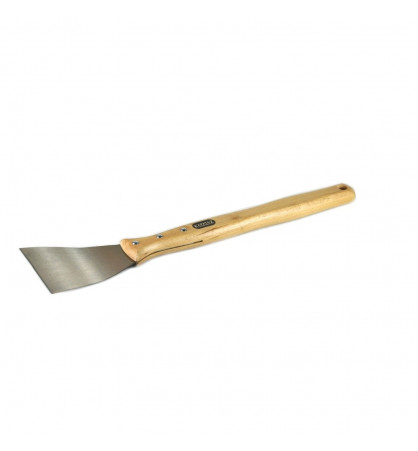 ESPÁTULA CURVADA PARA DECAPAR Hoja de acero inoxidable y mango de madera. Disponible en distintas medidas: 33 cm largo x 10 cm ancho ó 100 cm largo x 10 cm ancho.