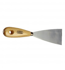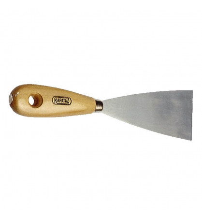 Espátula acero con mango madera. Disponible en distintos anchos de hoja: 3 cm, 4 cm, 5 cm, 6 cm, 7 cm, 8 cm y 10 cm.