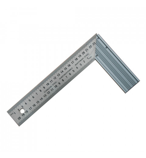 ESCUADRA INGLETEADA MILIMETRADA Hoja de acero inoxidable y talón ingleteado de aluminio. Disponible en distintas medidas: 250 mm, 300 mm y 400 mm.