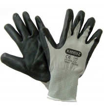 Guantes de tejido nylon con recubrimiento flexible de espuma de nitrilo. Reduce la fatiga y ofrece un máximo confort, dexteridad y buen agagrre incluso en superficies oleosas. Acabado liso. Cumple la normativa europea UE EN420:2003 + A1:2009 y EN388:2016. Disponible en talla 8, 9 y 10.